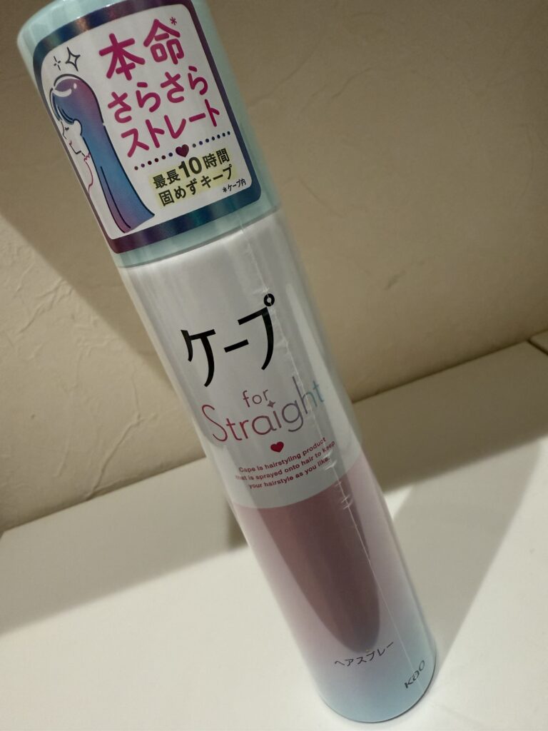 こちらはケープの新作ストレートヘア用のスプレー。ストレートアイロンした後にスプレーします。スプレー後くしでとかしてOK!